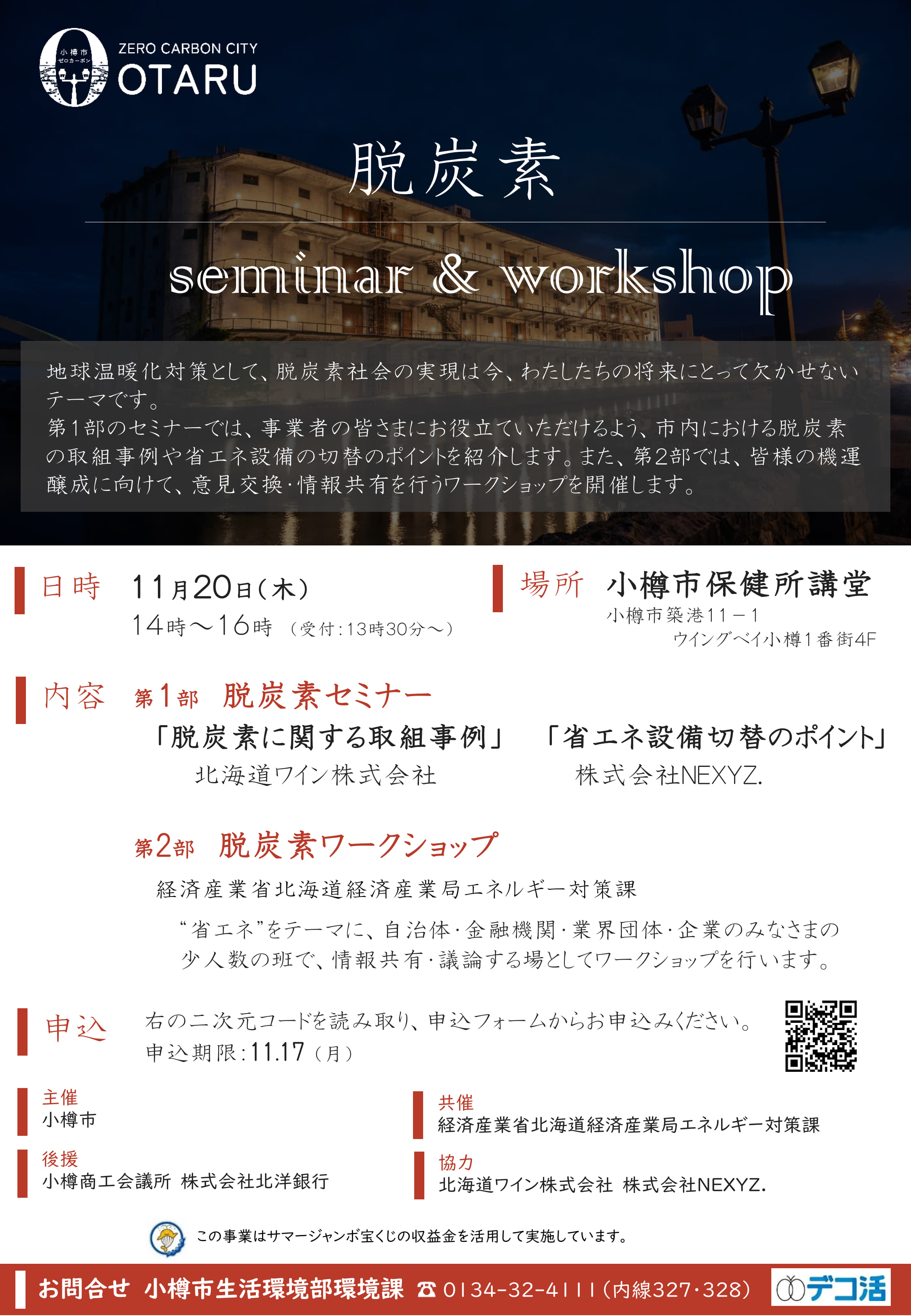 2025年11月20日(木)に北海道小樽市で開催された「脱炭素セミナー&ワークショップ」において、当社株式会社NEXYZ.取締役・松下法生が登壇いたしました。